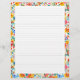Este papel de papelaria apresenta um vibrante design floral de cor d'água, em negrito, com folhas revestidas. Ideal para registro, reserva e escrevendo de cartas.