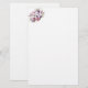 Este papel de papelaria é mostrado em branco fosco com uma linda impressão de lírio lilás e rosas.