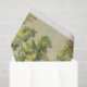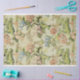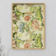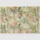 Design de papel de parede em estilo chinês. Vemos galhos de árvores extraordinárias com folhas ouro-verdes e botões de flores rosa, laranja e azul - plantas magníficas absolutamente não vistas. O fundo geral do design é ouro bege verde.
