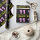 Este design de papel de embrulho alegre e divertido, com tema de aniversário, apresenta um grande número "11" com uma rosa claro e um padrão listrado cor-de-rosa escuro contendo formas cardíacas. Ele também apresenta a mensagem de saudação de aniversário "Parabéns ao Aniversário do 11", e um nome de destinatário personalizável. O papel de embrulho temático de aniversário como este pode ser usado quando se dá um presente ou presente em comemoração do 11 de alguém. [~Z0000435]