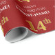 Este elegante e luxuoso design de papel embrulhado com tema de aniversário tem a mensagem "HAPPY 14 BIRTHDAY", um nome personalizável, e o número de aniversário "14" com um padrão de aparência inspirado em falsa/imitação de ouro. O fundo tem cor vermelha. Um papel de enrolar como este pode ser usado no empacotamento de presentes/presentes que estão sendo dados em comemoração do aniversário de 14 de alguém. [~Z0000491]