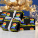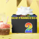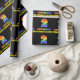 Este alegre, divertido e colorido design de papel de embrulho de aniversário apresenta um grande número "2" e a mensagem "FELIZ ANIVERSÁRIO", ambos com uma coloração de padrão com gradiente de espectro de arco-íris, juntamente com um nome de destinatário personalizado em amarelo negrito. O fundo é colorido de preto. Papel de embrulho temático de aniversário divertido como este pode ser usado para embrulhar um presente ou dádiva sendo dado a alguém que está celebrando seu segundo aniversário.