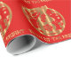 2023 Rabbit Feliz papel de enrolar chinês no ano novo | Este papel de embalagem fofo e festivo apresenta uma imagem espantosa de um coelho com o ditado "Ano do Coelho", com um belo efeito digital a cores douradas e um fundo vermelho.