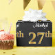 Este design de papel empacotado com temas luxuosos, elegantes e na moda apresenta um grande número ordinal "27º" com aparência de ouro falso/imitação, além da mensagem de saudação de aniversário "Feliz 27º Aniversário" e um nome de destinatário personalizável em uma fonte estilo script. Também tem um fundo de cor preta. Um papel de embrulho como este pode ser usado ao embrulhar presentes que estão sendo dados a alguém em comemoração do seu vigésimo sétimo aniversário. [~Z0000515]