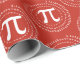 Este papel de embrulho de presente Pi Day vermelho e branco apresenta um número Pi espiral 3.14 e um padrão de símbolo Pi. A cor de fundo é fácil de personalizar a dentro da ferramenta design.