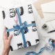 Papel De Presente 50th Aniversário, preto, texto azul no branco