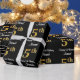 Este na moda, luxuoso e sofisticado design de papel de empacotamento com tema de aniversário apresenta um grande número ordinal "5" com aparência de ouro falso/imitação, além da mensagem de saudação de aniversário "Happy 5 Birthday" e um nome de destinatário personalizável em uma fonte estilo script. O fundo é preto colorido. O sofisticado papel de embrulho temático de aniversário como este pode ser uma maneira divertida de embrulhar um presente ou presente para alguém que comemora seu quinto aniversário. [~Z0000515]