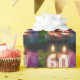 bolo de aniversário com velas embrulhando papel. As velas são compostas pelo número 60, para 60 anos.
