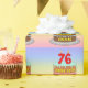 esta divertida e alegre design de papel de embrulho com tema de aniversário apresenta uma representação em estilo cartoon de um bolo de aniversário de três níveis, com velas em forma numérica no topo, mostrando o número "76", juntamente com a mensagem "HAPPY 76TH BIRTHDAY", e um nome de destinatário editável. O plano de fundo apresenta um espectro de arco-íris pastel de várias cores inspirado em gradiente. Um papel de embrulho como este pode ser usado para dar um presente ou presente em homenagem ao 76° aniversário de alguém. [~Z0000622]