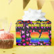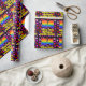 This joyful and happy birthday wrapping paper design features a large number “84” having a rainbow spectrum gradient inspired pattern. It also features the message “Happy 84th Birthday,”, and a personalized name. The background features a pattern of purple, red, and pink heart shapes. Birthday themed wrapping paper like this might be used when giving a gift or present in celebration of somebody’s 84th birthday. [~Z0000549]