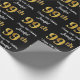 Este design de papel empacotado com temas luxuosos, elegantes e na moda apresenta um grande número ordinal "99º" com um padrão de gradiente tipo ouro imitação/falsa, além da mensagem de saudação de aniversário "Feliz 99º Aniversário" e um nome de destinatário personalizado em uma fonte estilo script. O fundo é preto colorido. O papel de embrulho temático de aniversário como este pode ser uma maneira divertida de embrulhar um presente ou presente para celebrar o 99º aniversário de alguém. [~Z0000515]