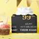 Este elegante e luxuoso design de papel embrulhado com tema de aniversário tem a mensagem "FELIZ 99º ANIVERSÁRIO", um nome personalizável, e o número de aniversário "99º", tendo um padrão de aparência inspirado em falsa/imitação de ouro. O fundo é preto colorido. Um papel de embrulho como este pode ser usado no empacotamento de presentes que estão sendo dados para celebrar o 99º aniversário de alguém. [~Z0000454]