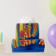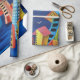 Uma imagem divertida e contemporânea de prédios coloridos flutuando na água.