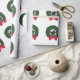 Seu cão toma o lugar central neste papel de envolvimento adorável do feriado. Uma grinalda verde do Natal com bagas vermelhas cerca sua foto (ou a foto atual da licença do filhote de cachorro do pug) e um osso vermelho destaca o ano ou seu nome. Aperfeiçoe para proprietários do cão, qualquer um que trabalha com cães ou o amante do cão. Woof!