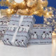 Ilustração gráfica de pinguins de Gentoo no ártico sob a lua e as estrelas. Envolva acima seu presente neste design original com papel de alta qualidade, lustroso e ilumine-o acima da época natalícia.