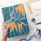 A mão floral fantasiosa desenhou um padrão perfeito. Flores laranja sobre fundo azul.