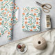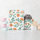 A piece of wrapping paper with a floral pattern featuring orange flowers and green leaves, shown unrolled and flat against a white background.