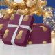 Este papel de envolvimento elegante caracteriza um teste padrão tropical do abacaxi do ouro do falso em um fundo colorido Borgonha. Um fresco, moderno procura os feriados do Natal.