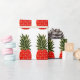 Este papel de envolvimento à moda do feriado caracteriza abacaxis vermelhos, verdes, e do falso do ouro em um fundo branco.