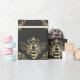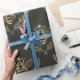 O embrulho de presente elegante, com um bonito padrão de abelha Dourada, sobre fundo negro.