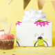 Um design divertido com um bufo branco com flores rosa brilhantes.