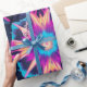 Composição vibrante e dinâmica de abstrato, com uma matriz de formas geométricas agudas e linhas convergentes. A trabalho de arte é caracterizada por uma paleta de cores elétricas dominada por néon rosa, azul brilhante, amarelo e laranja, criando uma experiência visual futurista e energética. A disposição simétrica e os efeitos radiantes da luz evocam uma sensação de profundidade e movimento, reminiscente dos visuais VJ ou da arte digital.