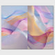 The image features an abstract composition of flowing, translucent ribbons in a variety of colors. The ribbons curve and intertwine, creating a sense of movement and depth. Colors include shades of blue, purple, pink, orange, and yellow, blending softly into each other. The background is a light, neutral tone, which allows the colors of the ribbons to stand out.