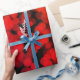 O fundo do abstrato transformou-se em papel de embrulho, uma camada preta com luzes de anzol em vermelho, laranja e amarelo-claro. Uma design divertida para qualquer ocasião de doação.