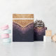 Piscinas lindíssimas e espirais de matizes castanhos ouros e uva grossa, púrpura, aparadas com ouro líquido. As camadas etéreas marmoreavam intrigantes de cores que se misturavam e se misturavam. Excelente para embrulhar um presente único para alguém especial no seu aniversário, casamento, aniversário ou ocasião festiva especial. Arte original da artista internacional Pauline Benjes. Veja nossas coleções para mais abstratos bonitos dela. Papel Dourado único de enrolamento de Abstrato castanho roxo e roxo.