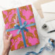 Leopardos abstrato com lábios vermelhos e ganhos em fundo rosa fuchsia