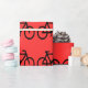 Este papel de envolvimento caracteriza um design contemporâneo de um teste padrão abstrato que repete bicicletas pretas em um fundo vermelho. A cor do fundo pode facilmente ser personalizada.