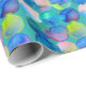 Uma pintura colorida de abstrato de cor d'água com círculos redondos legal azuis, verdes roxos, num design de padrão para mostrar os padrões de cor de fusão.