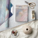 Pastel azul, lacado, rosa e dourado com padrão de abstrato de traçado de pincel branco.