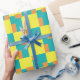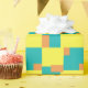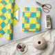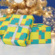 Um padrão geométrico abstrato originalmente projetado em amarelo-limão, turquesa e laranja.