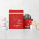Fundo vermelho, e um padrão de renas brancas de linha abstrato one. Personalize e adicione seu nome e ano. Texto; Feliz Natal