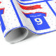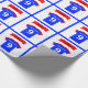 A camiseta esportiva vermelha e azul neste papel de embrulho tem um grande número branco 9, e espaço para você personalizá-la adicionando o nome da criança de aniversário. A design também apresenta uma faixa ousada de "Feliz Aniversário". Os cartões de aniversário correspondentes também estão disponíveis.