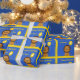 Esse papel de embrulho de leão está pronto para você personalizar adicionando o nome da criança de aniversário. As cores azuis e amarelas brilhantes atraem crianças pequenas, e elas adorarão este leão sorridente com seu balão amarelo de 4° aniversário. A saudação padrão é "Parabéns", mas você também pode mudar isso se quiser. Dica: o design em camadas garante diretrizes fáceis para cortar o papel até o tamanho.