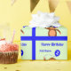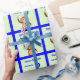 As crianças adoram macacos, e este tem um balão azul brilhante de segundo aniversário. Parece tão fofo, e você pode personalizar o papel de embrulho adicionando o nome da criança de aniversário.A saudação padrão é "Parabéns", ou você pode mudar isso também se quiser. O design com o título garante diretrizes fáceis para cortar o papel até o tamanho.