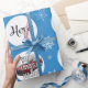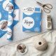 Papel de embrulho personalizado do Natal de Mitsubishi Evo X do floco de neve. Adicione 2 fotos diferentes. Fundo azul.
