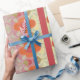 Embalagem floral e estriada de presente.