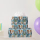 Cãezinhos pitbulosos e bonitos sobre fundo azul-claro com flocos de neve e verde, vestindo um lenço azul de inverno... e um arco vermelho, o maior papel para embrulhar seus presentes neste ano, um deve ter para as famílias de pitbulas ou qualquer amante de cachorro - A © WhimsicalArtwork™ original -