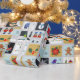 Countdown to Christmas with winter-themed pictures for every day before Christmas, from the first of December to the 25th! Mittens, ice skates, snowflakes, and cute animals on small squares with calendar numbers make this a charming wrapping paper for your holiday gifts.