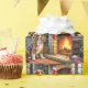 Papel De Presente Afghan Hound Fireplace with Christmas Lights