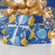 Se você ama papel de embrulho pesado de boa qualidade, você vai adorar este item. Exibindo um agradável design de Chanucá com sonhos azuis e dourados, as imagens são mostradas em um fundo azul. Há letras hebraicas. Compre seu papel de embrulho de Hanukkah hoje! Design de padrão Hanukkah: AMBilustrações http://www.etsy.com/shop/AMBillustrations/