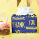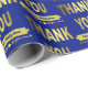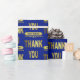 Um papel de embrulho de agradecimento fabuloso com um design de tipografia de letras douradas em um fundo azul. Um papel encantador para embrulhar seus presentes de agradecimento. Ideal para seu cuidador, médico, pastor, professor, familiares e amigos. Adicione um nome para personalizar ou adicione o nome da sua empresa ou família para tornar este um papel de embrulho de presente especial e único. Ótimo para presentes de agradecimento para funcionários.