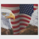 A majestosa Águia Balda em frente à bandeira americana. Perfeito para comemorações patrióticas como o Dia do Veterano e o Dia da Independência/4 de julho. Trabalho de arte realista criada de uma pintura original de óleo pela vida selvagem e a artista equina Crista Forest. Consulte mais em ForestWildlifeArt.com.