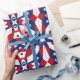 DESIGN Patriótico Americano de Arte AI com Estrelas Brancas Vermelhas e Azul Este é um rolo de papel embrulhado Americano Patriótico. O design de papel embrulhado foi criado com arte artificial de inteligência. O design é um design Americano Patriótico com estrelas brancas estrelas Americanas em forma azul vibrante com fundo vermelho. O padrão patriótico tem sotaques brancos. O papel de embalagem é impresso nos EUA.