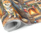 Papel De Presente Akita Sitting by Fireplace with Christmas Lights