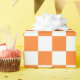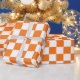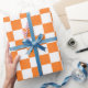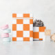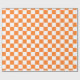 Arte digital abstrata de quadrados alaranjados e brancos em uma formação checkered.