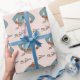Papel de embrulho de Sweater de Natal feio que você pode personalizar com seu(s) nome(s) ou nome da família. A design tem um saltador de natal feio que escreve "alegria ao mundo" e uma fronteira de Feliz Natal decorada com luzes de natal.